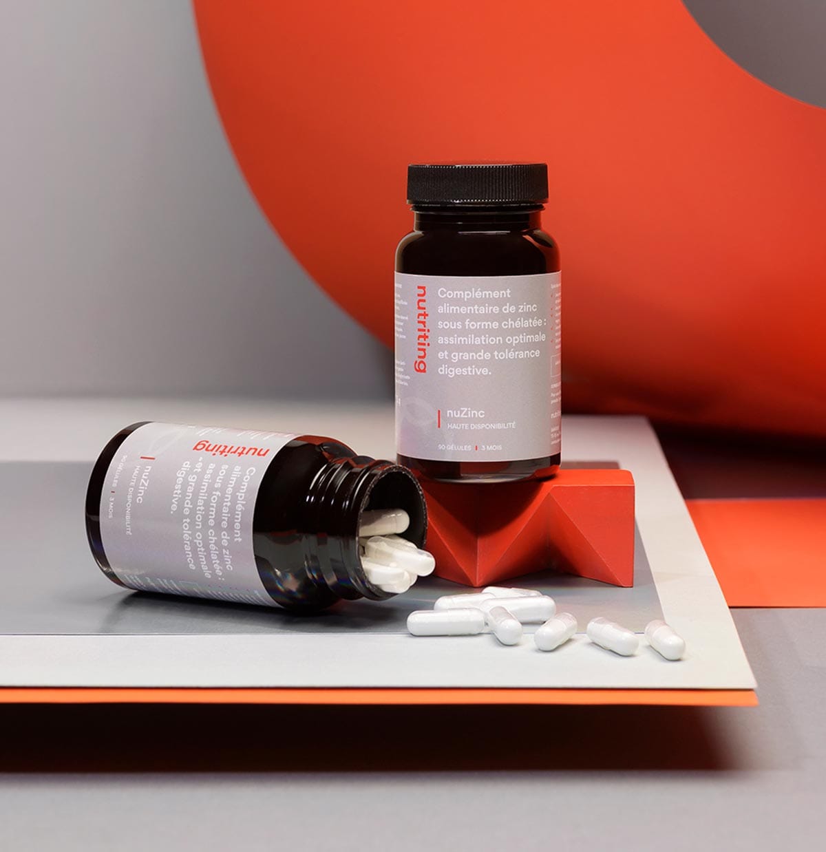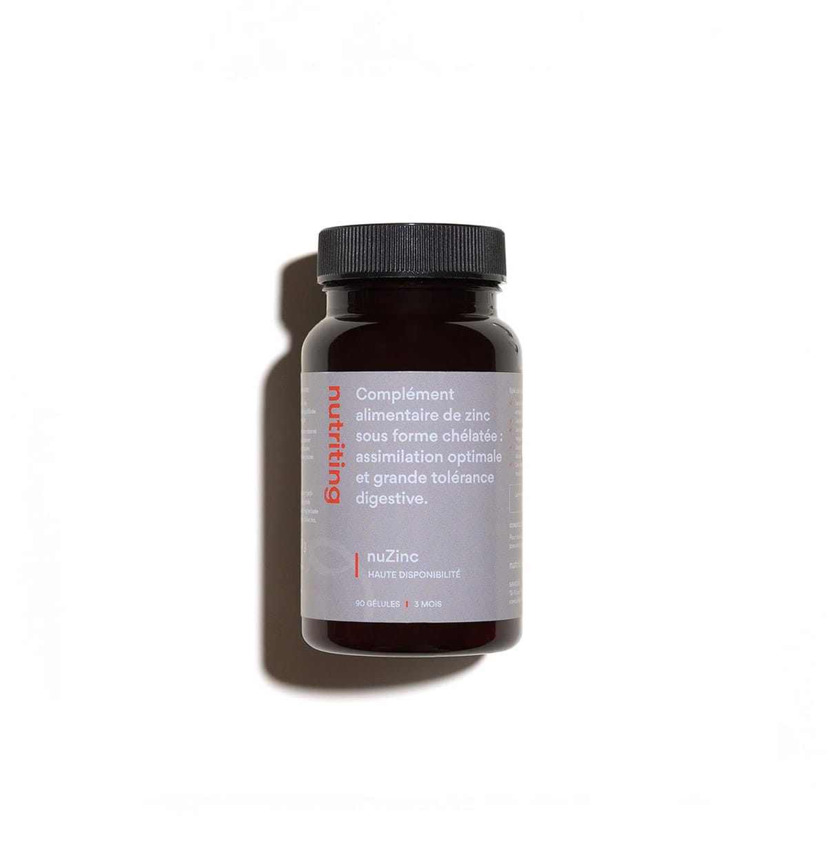 Pour nuZinc, nutriting a sélectionné le bisglycinate de zinc chélaté TRAACS® (Albion®), une formulation scientifiquement reconnue pour sa biodisponibilité exceptionnelle et sa tolérance digestive :